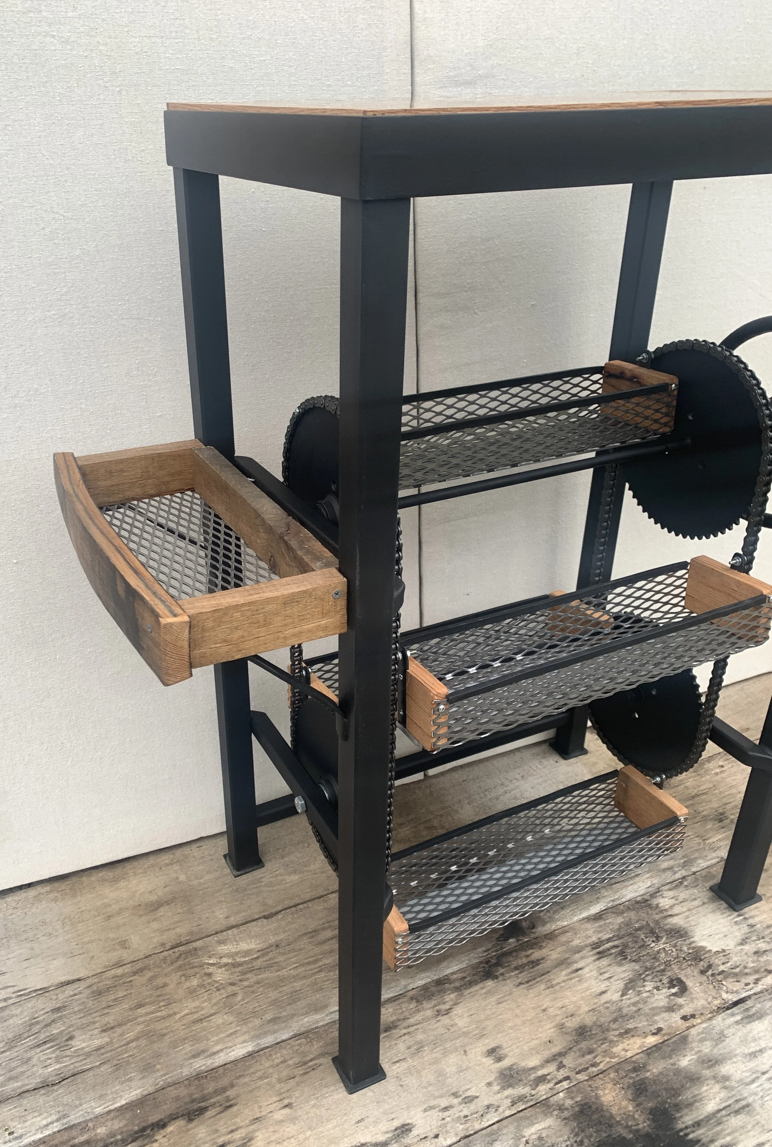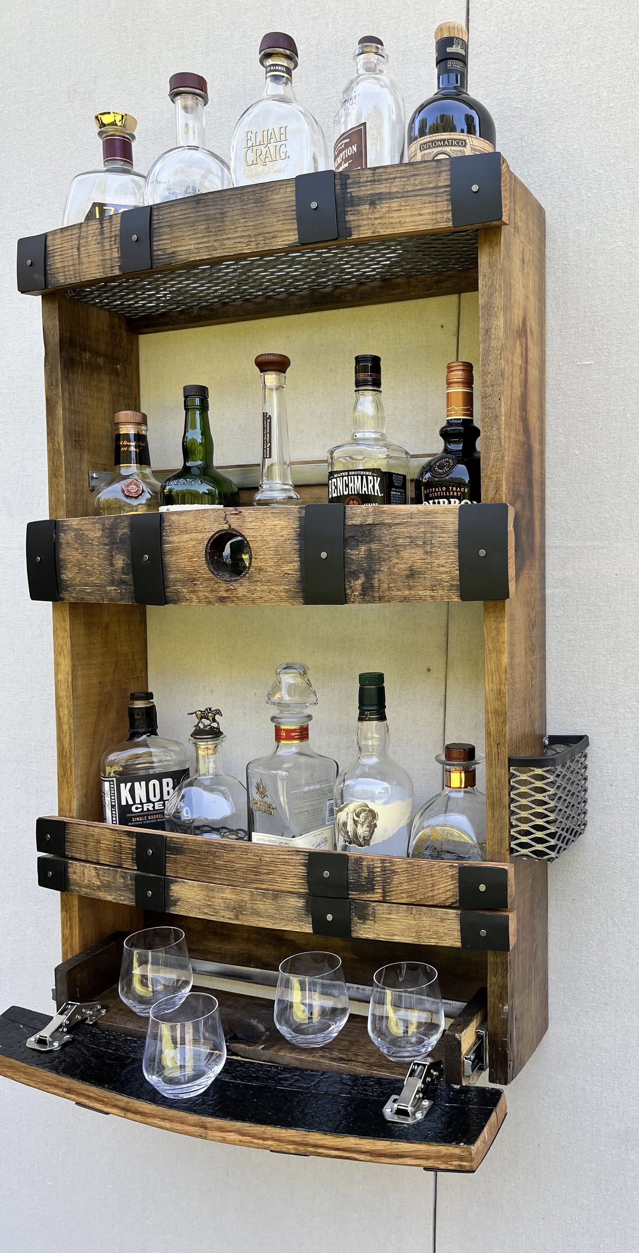 Liquor Chain Shelf with Hoop $309.00 Full Service Revolving Bar $2,196.00 Small Revolving Wine Stave Table $1,805.00 Large Bourbon Whiskey Stave Wall Bar $603.00 Bourbon Shelf with back Staves $202.00 Bourbon Barrel Head, Ring with Glass Shelf $233.00 Barrel Head Double Shelf $343.00 Double Stave Wine Rack $170.00 Wall Art Wine Bar $319.00 Revolving Bourbon Table $2,131.00 Bourbon High Top Cocktail Table $517.00 Corkscrew High Top Cocktail Table $533.00 Barrel Mini Bar-Moonshine Theme $571.00 5 Wine Stave Lattice Votive Wall Art $210.00 Wine Stave 12 Bottle Wall Rack with metal grape leaves $184.00 Wine Stave Votive with leaves-decorative hole $183.00 Double Barrel Ring Wall Decor $235.00 Bourbon Barrel Ring Wall Decor-Ball Lid $170.00 Wine Barrel Charcuterie Board/Wedding Cake/Fruit & Cheese/Cupcake Display - tiered $446.00 Barrel Ring Wall Art-fan design $164.00 Wine Stave Votive Wall Decor(fan design) $194.00 Wine Barrel Charcuterie Board/Wedding Cake/Fruit & Cheese/Cupcake Display - dome $446.00 Bourbon Barrel Charcuterie Board/Wedding Cake/Fruit & Cheese/Cupcake Display - tiered $446.00 Bourbon Barrel Charcuterie Board/Wedding Cake/Fruit & Cheese/Cupcake Display - steps $446.00 Wine Stave 12 Bottle Wall Rack $169.00 Large Revolving Wine Barrel Stave Table $1,901.00 Bourbon Stave Engraved Wall Decor-Neat $77.00 Bourbon Stave Engraved Wall Decor-Proof $77.00 Wine Barrel Stave Table (16 bottles) $1,275.00 Bourbon Whiskey Stave Wall Bar $566.00 Corkscrew Wall Décor (horizontal) $343.00 Wine Barrel Stave Trunk-Chest, the original $835.00 Wine Barrel Stave Table (18 bottles) $1,423.00
